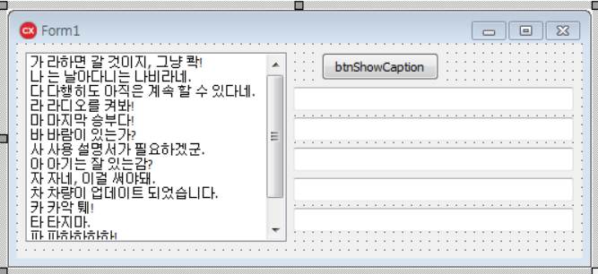 리스트 박스의 내용을 다섯개 선택하고, 버튼을 누르면 5개의 에디트 박스로