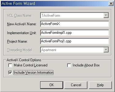 생성된 html은 ActiveFormProj1.inf" 라는 형태로 되어있으니 ActiveFormProj1.cab#version=x,x,x,x 으로 바꿔주시기 바랍니다.