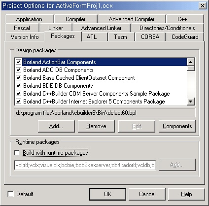 Active Form의 해더파일에 (이부분은 경고창 뜨는것을 제거하기위함입니다.)