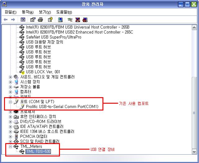 첨부파일은 장비가 연결되어 있는 컴퓨터의 장치관리자를 화면 캡쳐한 파일입니다..