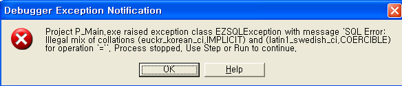 illegal mix of collation (euckr_korean_ci,MPLICIT) and