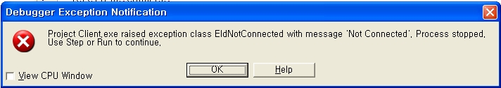 -> 폼이 종료 되거나 IndyTCPClient가 DisConnect되기만 하면 error가 뜹니다. 도와주세요~ ㅠ.ㅠ