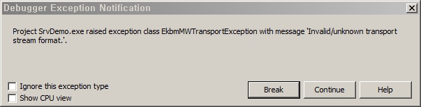 데모에 있는 Stateful 폴더에 있는 클라이언트와 서버 폼에 각각 TkbmMWEventCrypt를 올리고 OnEncrypt / OnDecrypt 이벤트를 kbmMW 사이트에 있는 Developing_support_for_additional_encryption_libraries.pdf 문서에 나온 예제대로 다음처럼 그대로 넣고 실행했더니......................