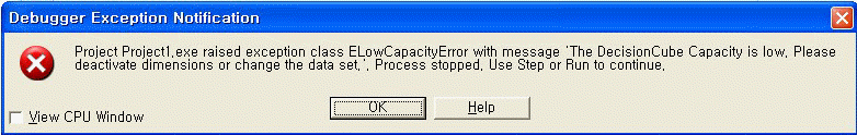 'The DecisionCube Capacity is low. please deactivate dimensions or change the data set.'