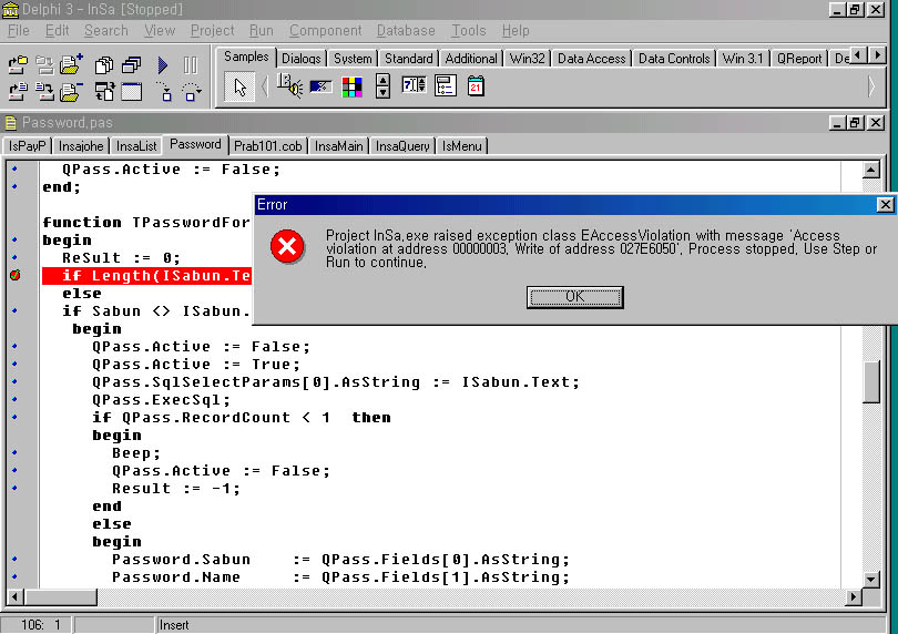 QPass.ExecSql; <------ 이 부분만 되면 오류나는듯.. (첨부 이미지와 같은 오류납니다-_-;;)