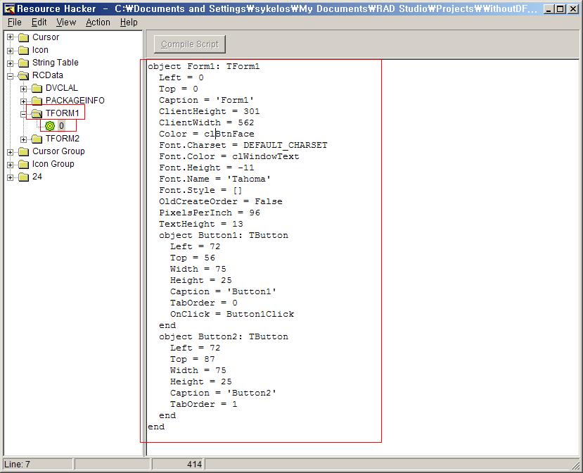 소스가 없는데 dcu와 dfm을 이용해서 컴파일하여,