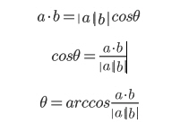 두 벡터가 주어졌을 때, 두 벡터의 사이각을 구하는 것은 보통 내적을 이용합니다.