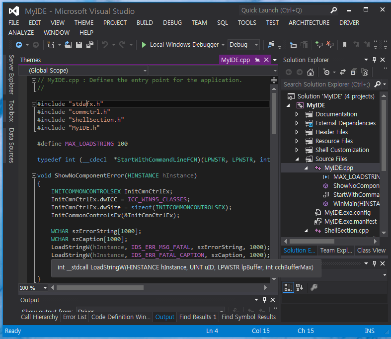 아래 그림은... isolated mode 를 이용해서 MyIDE.exe 라는 Visual Studio IDE를 C++로 컴파일해서 생성한 겁니다...