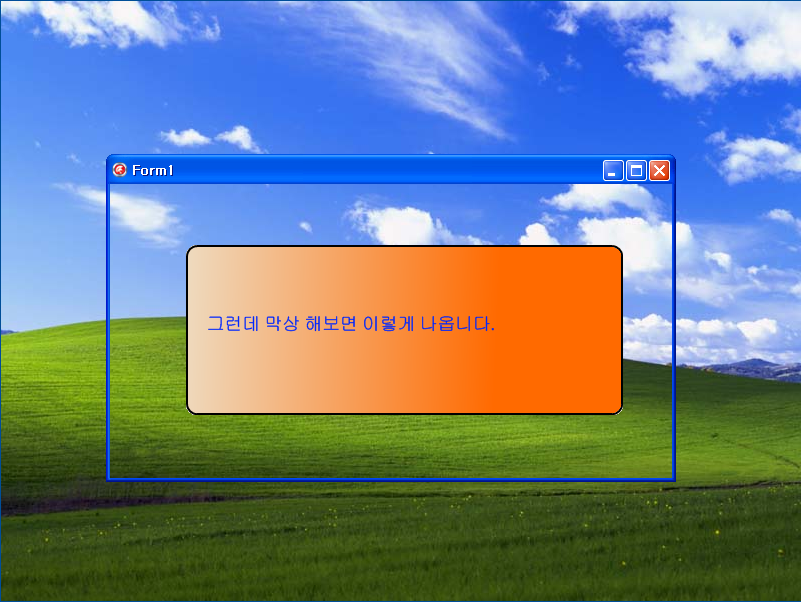 폼위에 이미지를 올려놓고 Form1.transparent=true; Form1.transparentColorValue=clBtnFace로 놓았습니다.