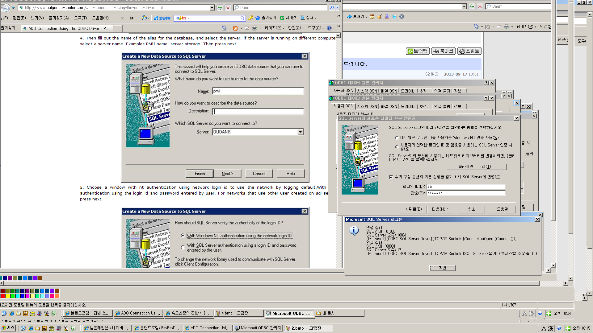 알려주신 방법으로 ODBC를 연결하는중 계속Error가 발생합니다(첨부)