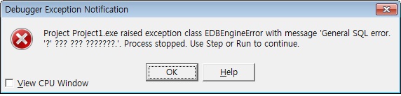 EDBengineError with messge 'General SQL error 이렇게 에러가 납니다.