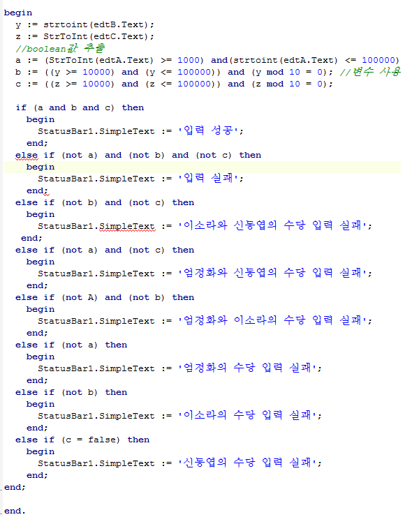 StatusBar1.SimpleText := '이소라와 신동엽의 수당 입력 실패';