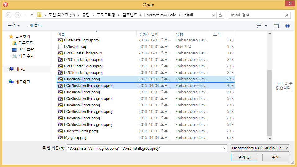 어쩌면 DXe2Install.groupproj은 DXe2InstallVclFmx.groupproj과 동시에 설치하는게 아닌가 싶어서