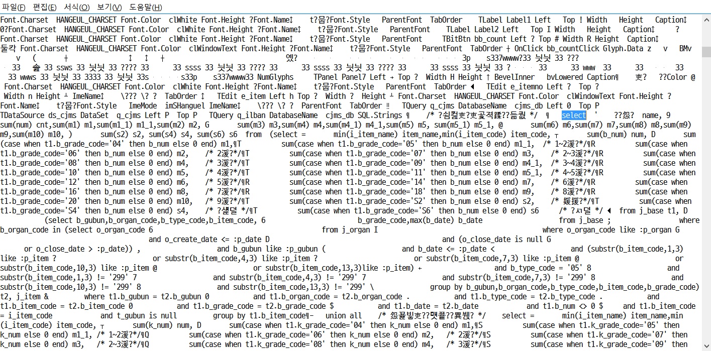 Re:dfm 파일 메모장으로 열면 일부 글자가 깨져서 보입니다.