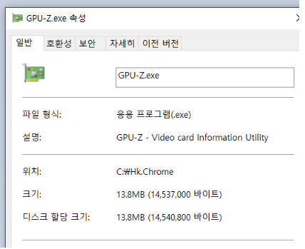 GPU-Z.exe 라는 프로그램이 인스톨 된 상태에서 실행파일 크기가 4메가 정도이지만