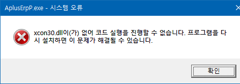 window10 에서 xcon30.dll 없어 코드 실행을 진행할 수 없습니다