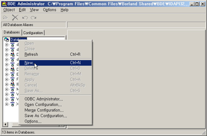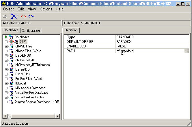 합니다. BDE가 설치되어 있다면 BDE Administrator를 기동하신 후 첨부된 파일의 각 단계를