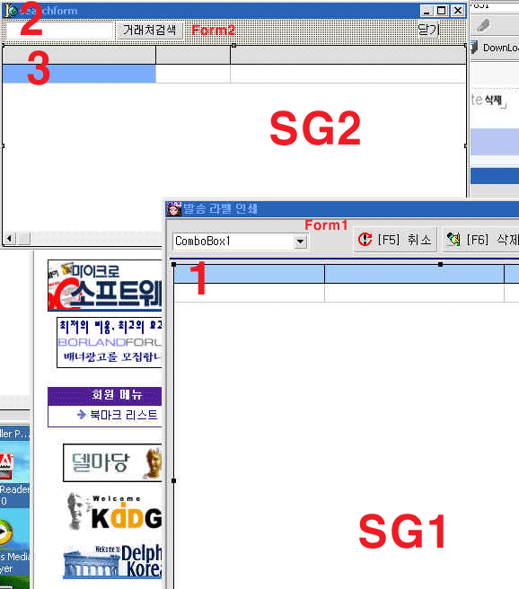 검색어를 넣으면 Form2가 팝업되면서 SG2에 검색결과가 뿌려지게 됩니다.
