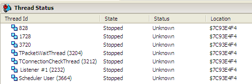멀티 쓰레드 환경에서 Break point를 잡고 디버깅 하다보면 불편한 것 중에 하나가 디버깅 데스크탑에 나오는 Thread Status 탭에 쓰레드 ID 만 나와서 구분하기 힘들다는 것입니다. 여기에 보면 Main 쓰레드의 경우는 Main 하고 나오지요.