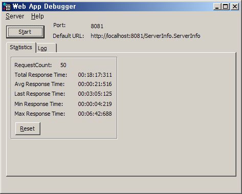 Web App Debugger Start버튼을 클릭하면, Default URL :