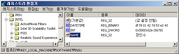 MyReg.WriteString('NAME', '장인수');
