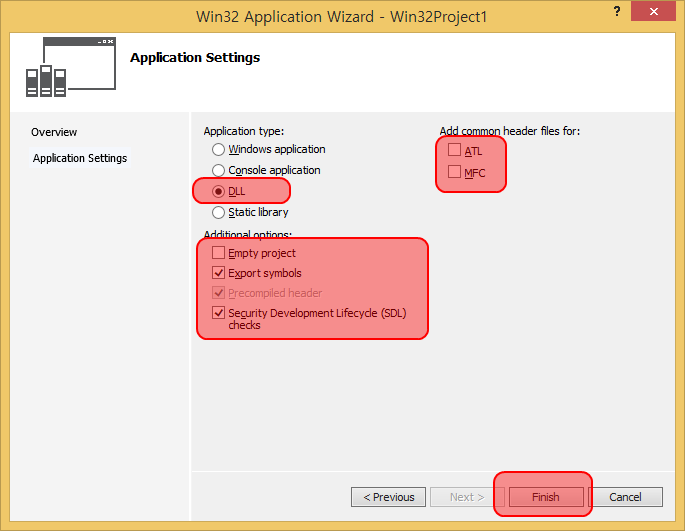 [Application type]에서 [DLL] 선택