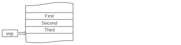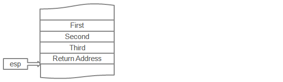여기서 콜링 컨벤션은 pascal인데, 이것은 서브루틴을 호출하기 전에 호출자가 세 파라미터를 선언된 순서대로 스택에 푸시한다는 것을 의미합니다(스택은 아래 방향으로 쌓이므로 첫번째 파라미터는 최상위 주소에 있게 됩니다):