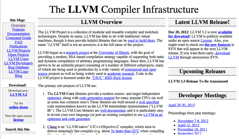 LLVM 프로젝트에 대해서는 LLVM 메인 웹 사이트에서 자세히 알아볼 수 있습니다.