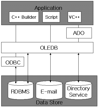 같은 4GL RAD 툴들을 사용하는 전통적인 개발환경에서도 ADO를 사용할 수 있다는 말이 된다. 실제로 Delphi에서 OLEDB 기술을 사용하기
