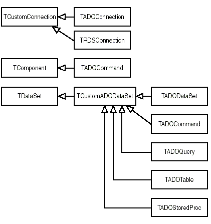 ADO 자체의 객체모델과 Delphi 내에서 VCL 화 된 클래스 구조를 살펴보기로 하자.
